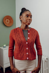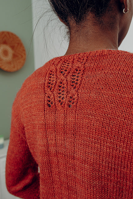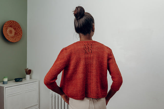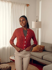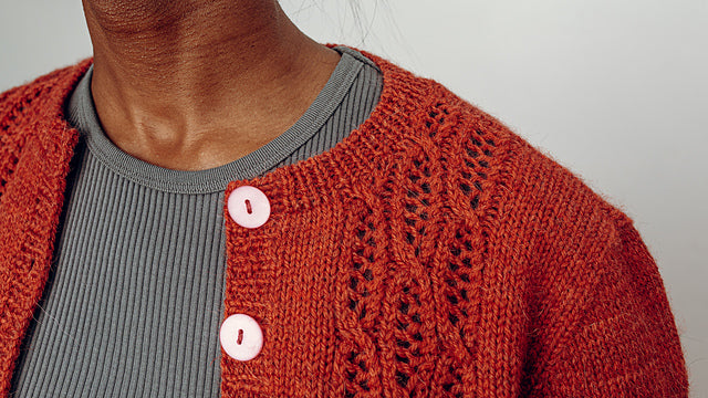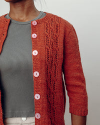 A classic lace-inflected cardigan with slightly boxy modern proportions, knit in lucious Alpaca Heather for a true year-round sweater to layer over a summer evening sundress or under a winter wool blazer.