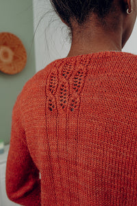 During neck shaping, if there are not enough stitches in the lace panel to work a decrease with its companion yarnover, work the stitch of the incomplete pair in stockinette.