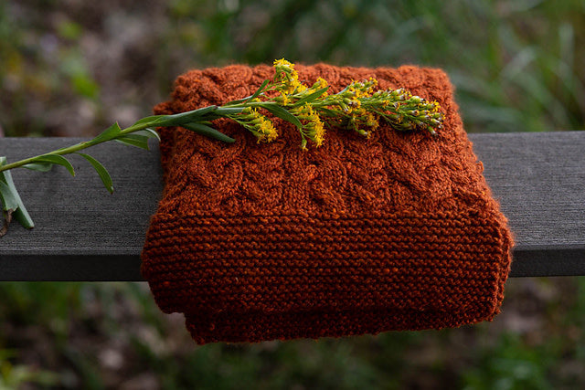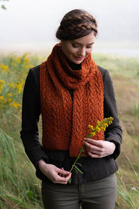 The Fibre Company Acadia (60% merino wool, 20% baby alpaca, 20% silk; 50g / 145 yd / 133 m) 5 skeins shown in Orange Storm