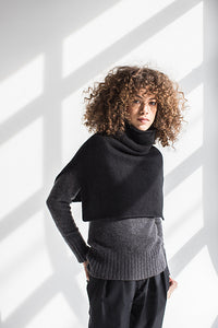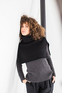 Dickie is worked in the round from the neck down to the lower edge of yoke, then front and back are worked separately back and forth.