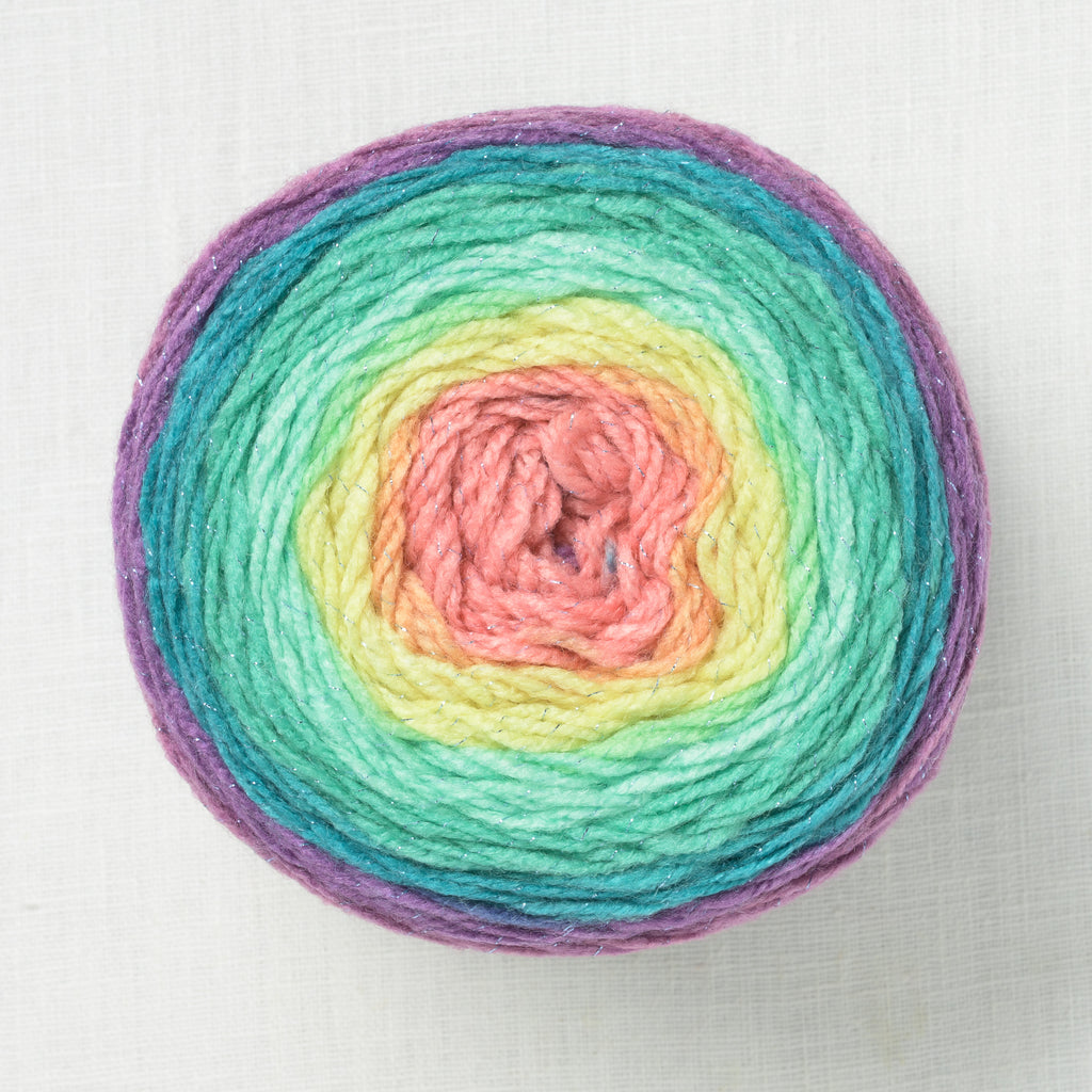 Bring a twinkling sparkle to every project with this yarn studded with glittering shimmer. Each self-striping colorway opens up so many possibilities for knit & crochet wraps, shawls, hats, scarves & adorable children’s clothing & accessories.