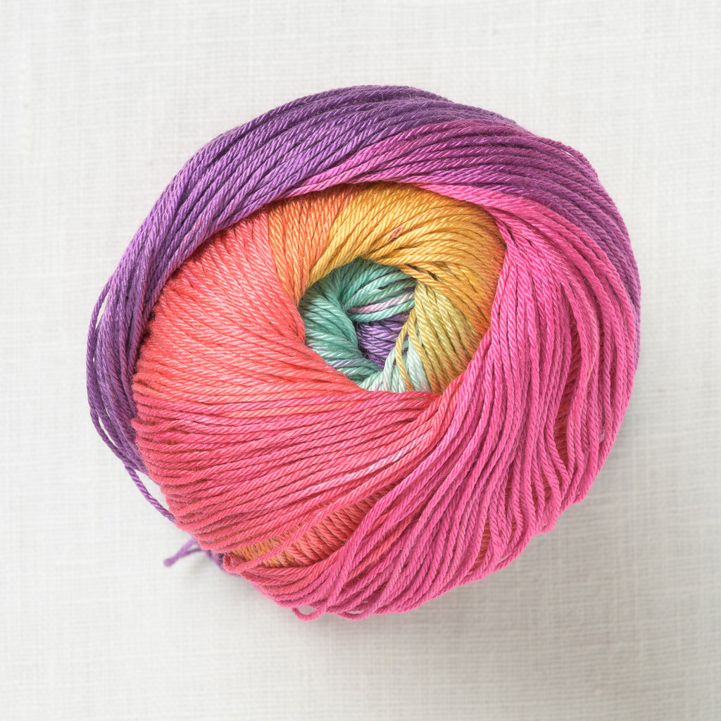 Mandala String is a summery, fingering weight yarn that has the soft, smooth feel of a mercerized cotton, but with a lighter drape. Choose from a selection of resort-ready colors!