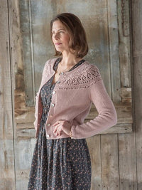 Longfellow is a darling top down cardigan featuring a simple lace yoke. Neck is shaped with short rows.