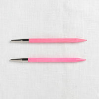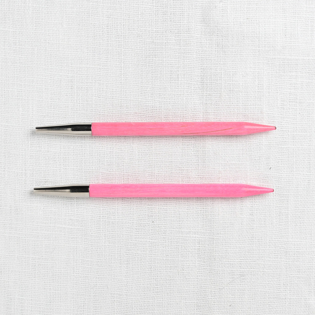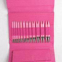 Pretty in pink! This beautiful set of pink, birchwood interchangeable needles are gorgeous & functional. Smooth & snag-free, the needles feel warm in hand. Lightweight, yet durable, the needles will provide a lifetime of knitting pleasure. The needles come in a snapping case with an elastic secured spot for each needle set, as well as a zippered & smaller snapping pocket for notions.