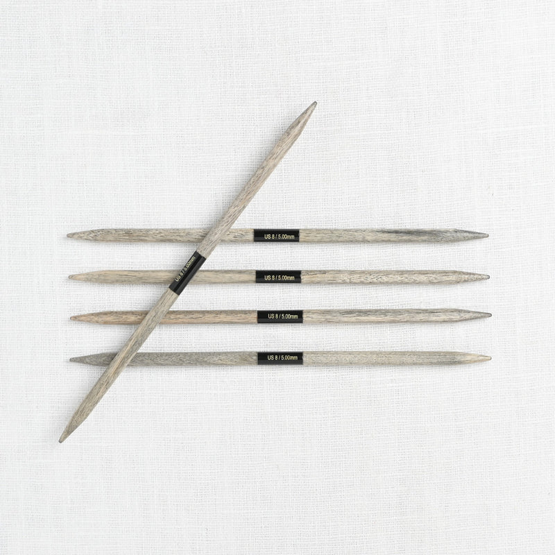 Fashion & function! These 6” length, double point needles from Lykke will deliver hours of happy knitting. Smooth & free of rough edges for smooth knitting, the needles are crafted from polished wood & possess a relaxing grey color reminiscent of beach driftwood. Lightweight, yet durable, the needles will provide a lifetime of knitting pleasure. US & metric needle sizes are clearly printed on the center band of each needle. Each set includes 5 double point needles.