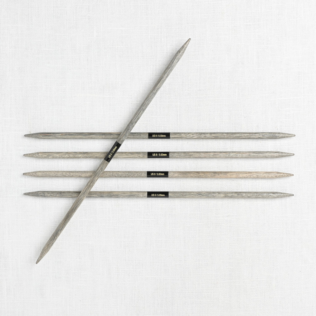 Fashion & function! These 8” length, double point needles from Lykke will deliver hours of happy knitting. Smooth & free of rough edges for smooth knitting, the needles are crafted from polished wood & possess a relaxing grey color reminiscent of beach driftwood. Lightweight, yet durable, the needles will provide a lifetime of knitting pleasure. US & metric needle sizes are clearly printed on the center band of each needle. Each set includes 5 double point needles.