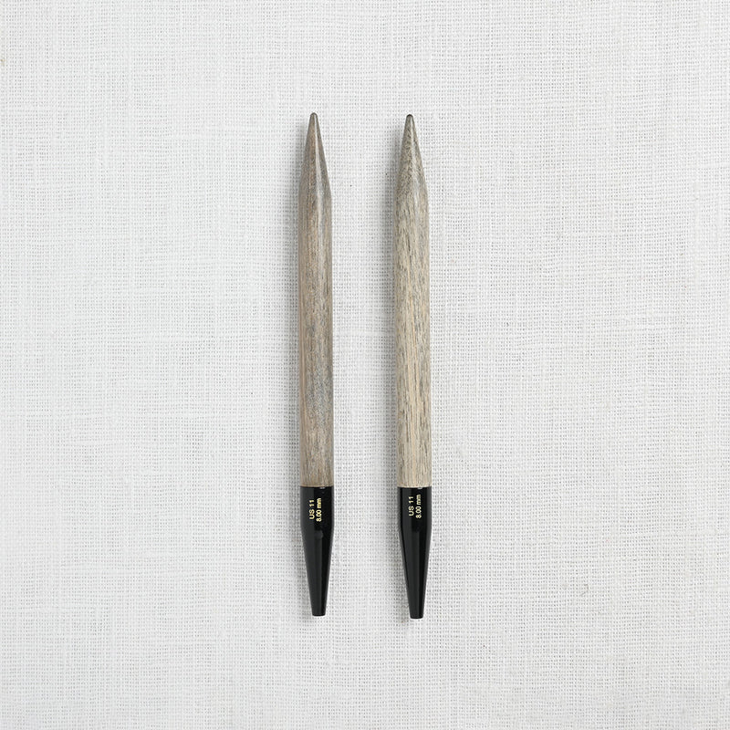 Lykke wood needles have a smooth finish reminiscent of driftwood. Warm to the touch, the lightweight, durable needles will provide a lifetime of knitting pleasure. Each needle is printed with the size. Each interchangeable set includes a pair of interchangeable needles. Cords & tightening keys are sold separately. Available in size US 4 (3.5mm)- US 17 (12.5mm).