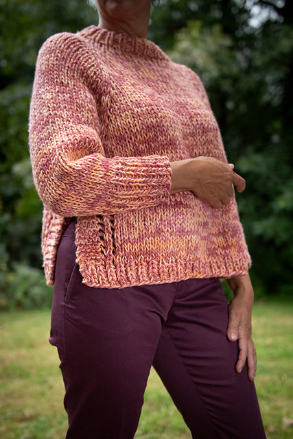 Mansard uses two strands of Maxima held together to create a gorgeous marled pullover. With its oversized silhouette and straightforward shaping, Mansard is a cute, cropped pullover that will become a wardrobe staple!