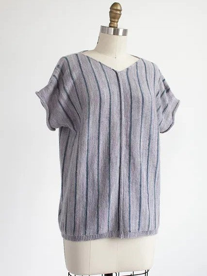 The body is worked sideways, beginning with the right front, followed by the back, and ending with the left front. The sleeve stitches are picked up around the armholes and worked in the round.