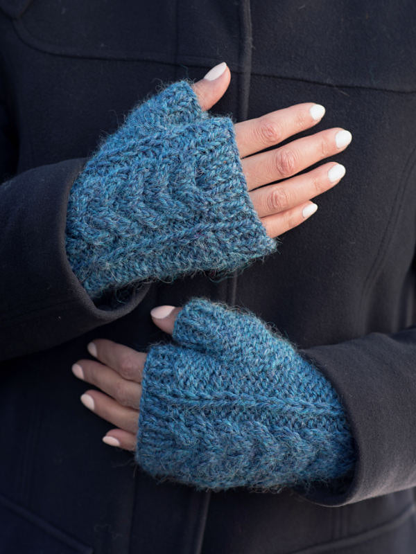 McKenna is a pair of fingerless mitts knit with Berroco Ultra Alpaca Chunky, featuring a simple pair of cable columns running up the back of the hand. These would also make great gifts!