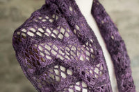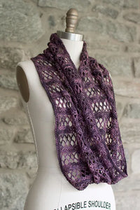 6 st pattern repeats (24 ch) = 4” and 3 row pattern repeats (15 rows) = 5½” in Staggered Square Lace Pattern, blocked, with smaller hook.