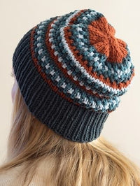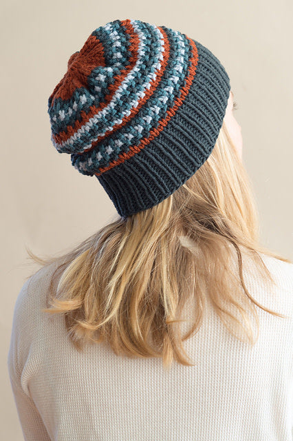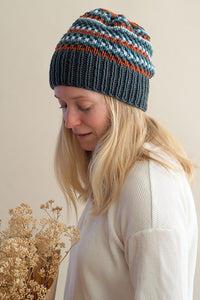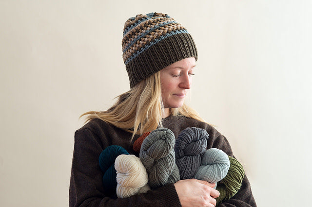 Leila's Miki is a quick and colorful hat for winter. A deep, ribbed brim keeps the ears snug and warm. With seemingly endless combinations to draw from in our Osprey palette, picking colors is half the fun. And, the contrasting colors all use small amounts—great if you have a lot of little leftovers of Osprey hanging around.