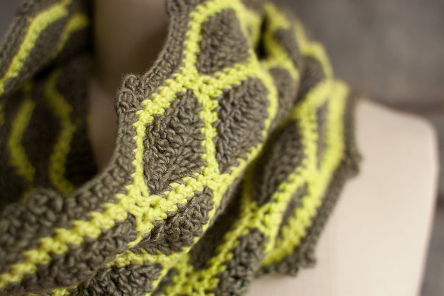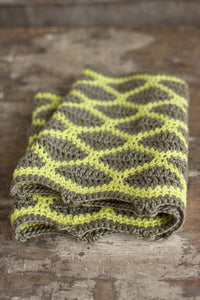 18 stitches and 13 rows = 4” over Mosaic Block Pattern