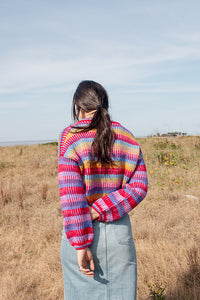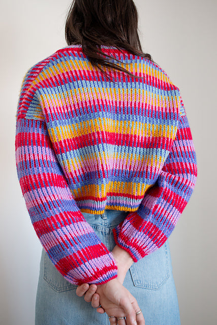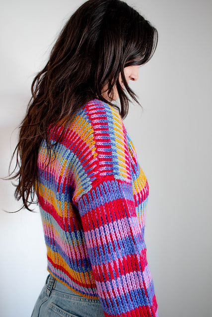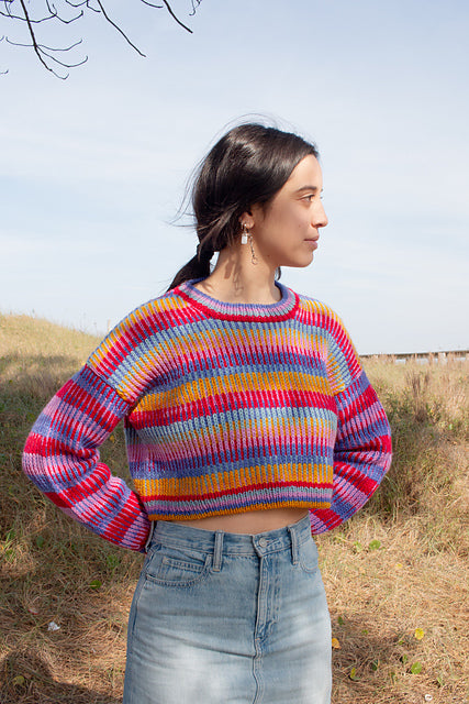 The sweater’s straightforward shape ensures that the vibrant and diverse palette of our new yarn takes center stage. We’re excited to see the unique versions you create!