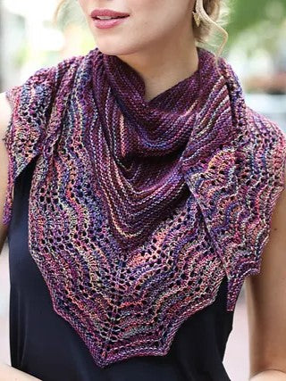 A lovely shawl that begins with a garter tab and grows to a delicate lace border.