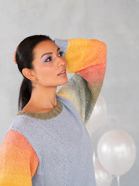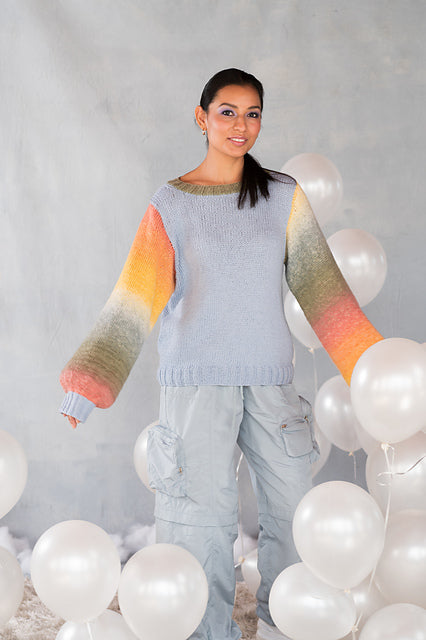 Body is worked in one piece from the bottom up to the underarms, then split for back and front. Shoulders are seamed and stitches for sleeves are picked up and knit in the round to the cuff.