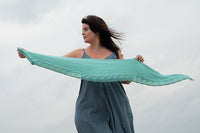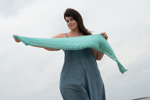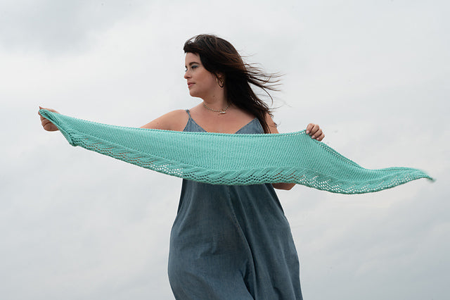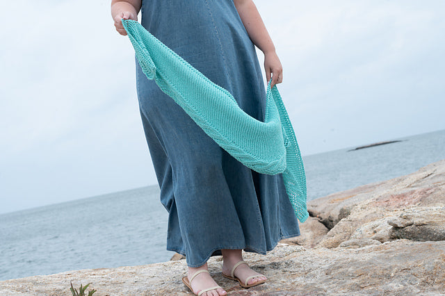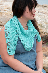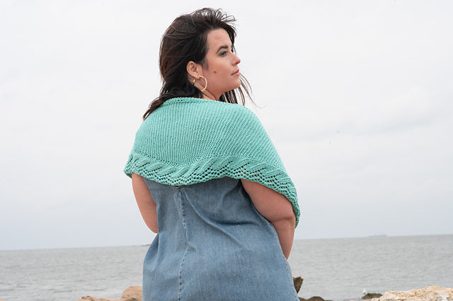Molucca is a sweet shawlette with ocean wave inspired lace edging. Knit Molucca in Seaspun yarn for a soft, lightweight accessory that effortlessly adds color and style.