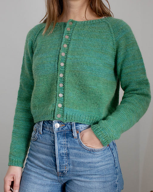 Montevideo is a cute little raglan sleeve cardigan with a simple shape and construction.