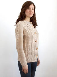 Finished Bust Circumference: 34¼ (37, 38¾, 42½, 47)” with 1½” front bands overlapped