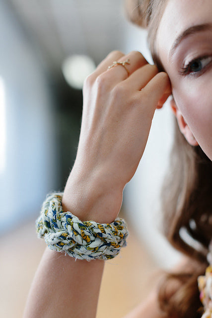 Remember those braided rope bracelets we used to wear as kids? I always wanted to know how to make one of those - now you can and it’s so simple. Our Nantucket Braided Bracelet is quick, fun project that uses our cotton fabric yarn in such a creative way. The Indian prints on the fabric give this bracelet a perfect bohemian twist too. In this pattern you’ll receive step by step tutorial photos to make your own bracelet as well as links to the youtube video where we dive into even more detail.
