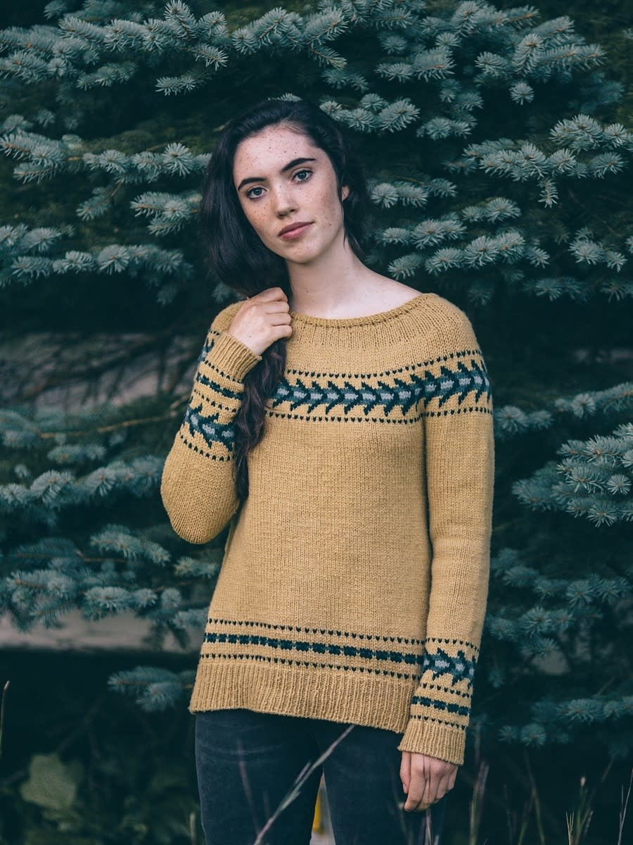 19 sts and 29 rnds = 4” / 10 cm in colorwork and stockinette with larger needles, after blocking
