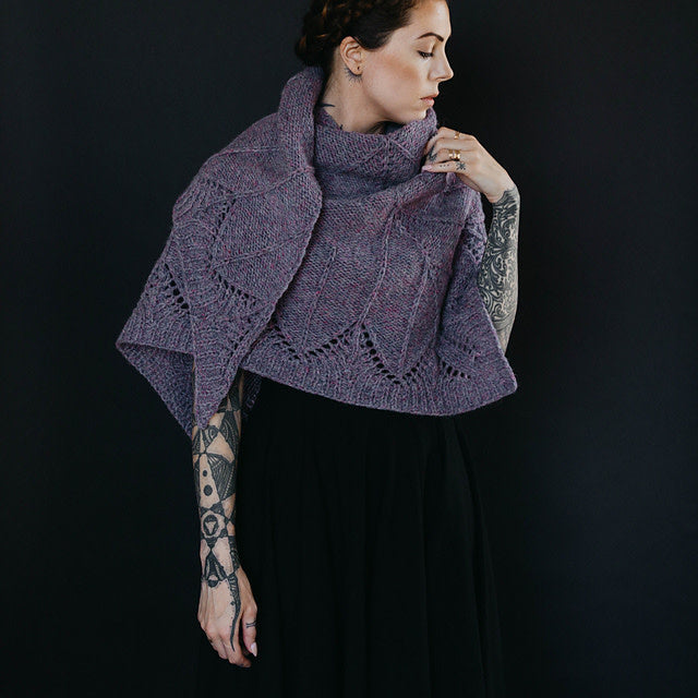 - Shawl is worked flat from the top down and center out, beginning with a long-tail cast on.
