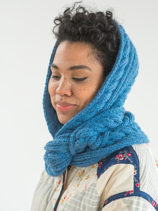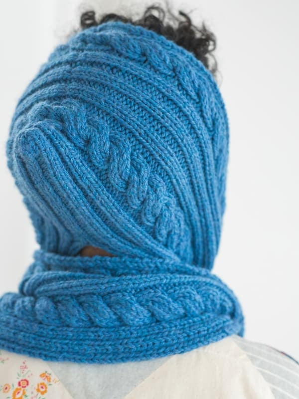Ribbing and cables make their way around this cozy hooded cowl. Wear it long or short depending on the mood you're in. You can even leave it open if you just want a scarf!