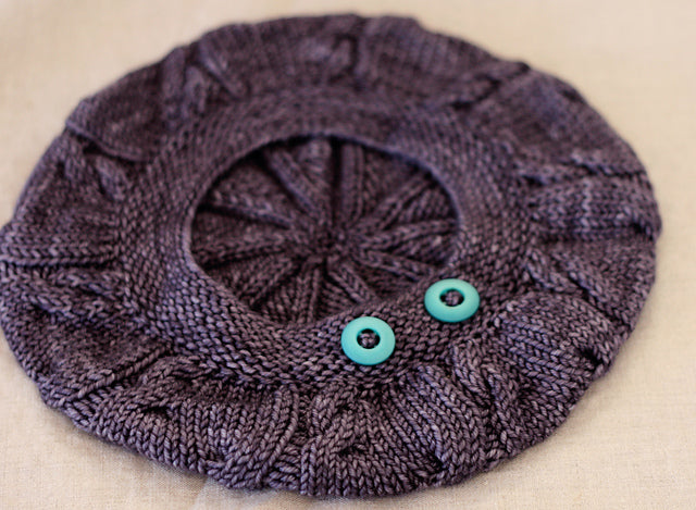 Two 2⅞” buttons, stitch markers, cable needle tapestry needle