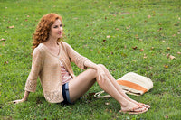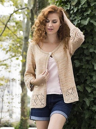 This loose and comfy open front cardigan is held together with a single sweet button. The lace detail on the hem is echoed on the bottom of the sleeves for elegant balance.