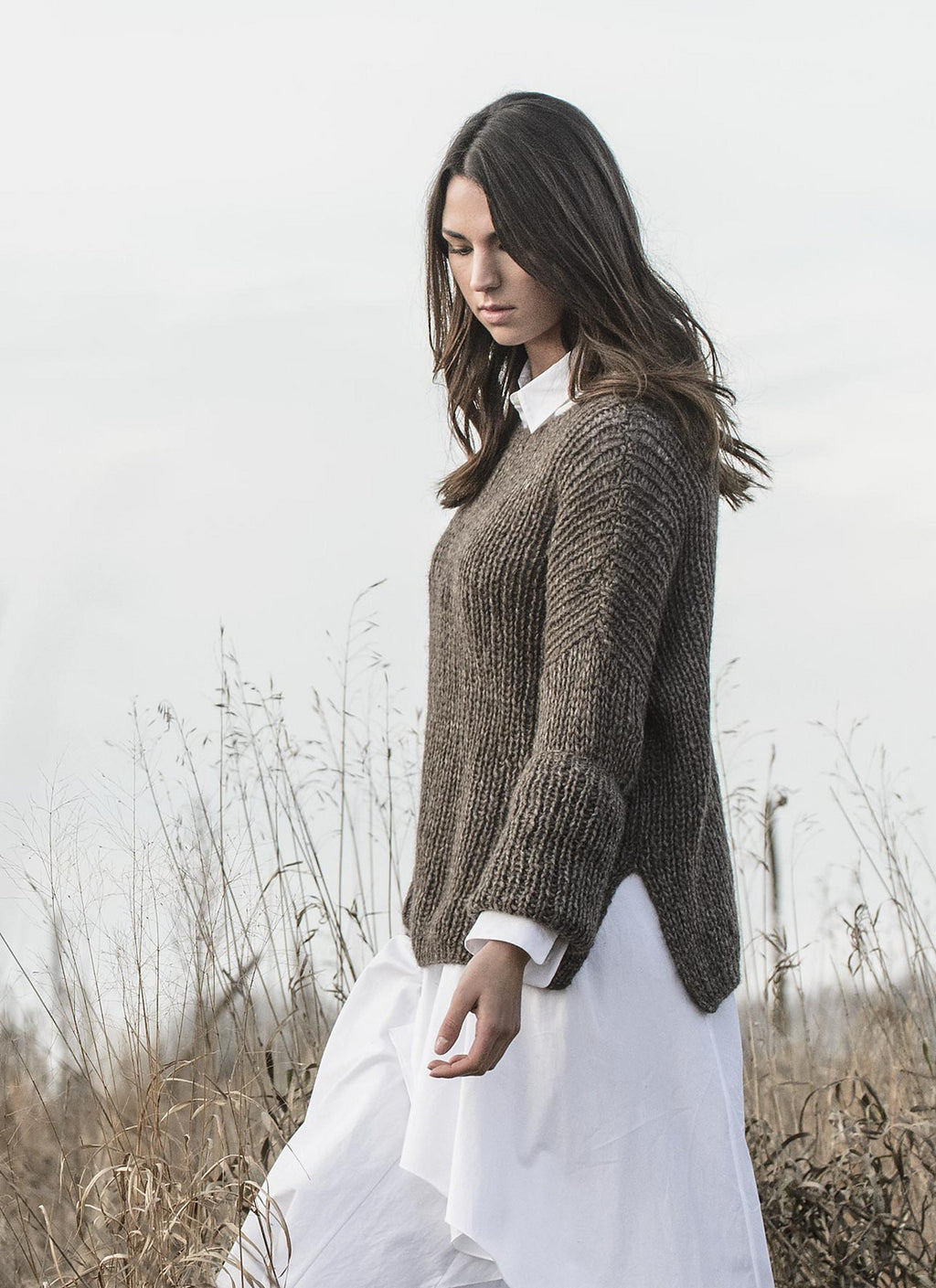 Designed with positive ease and longer sleeves, the Preston Pullover is the perfect balance of style and comfort. The surprisingly lightweight all over rib is easy to do, and also flattering. Knit in Techno; a light bulky blend of baby alpaca, fine merino, and silk; this sweater is beautifully cozy with transcendent spirit.