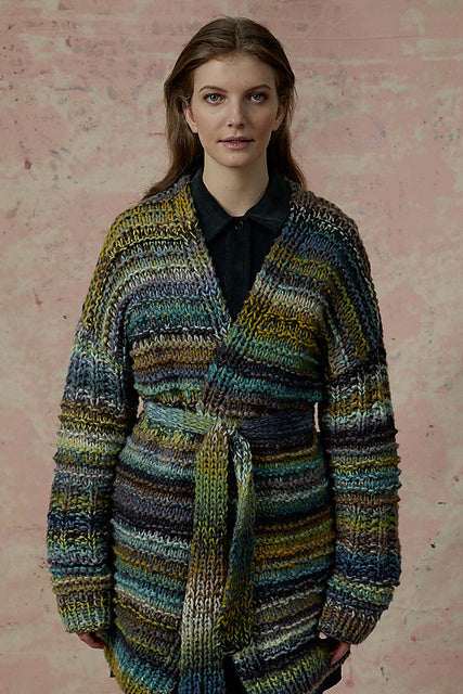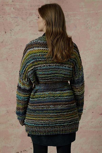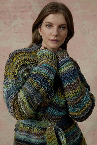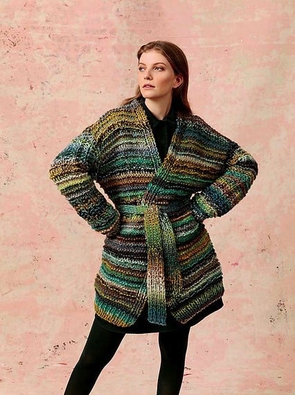 The jacket is knitted with a double strand of yarn.