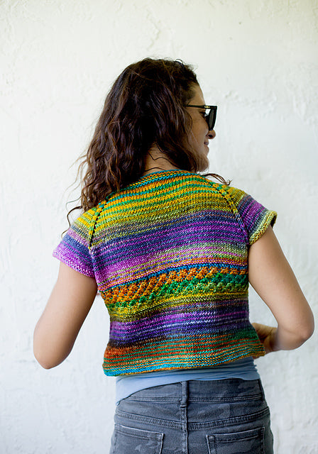 A breezy top to see you through any change of weather. A slipstitched band of texture adds just a bit of interest under the raglan cap sleeves.