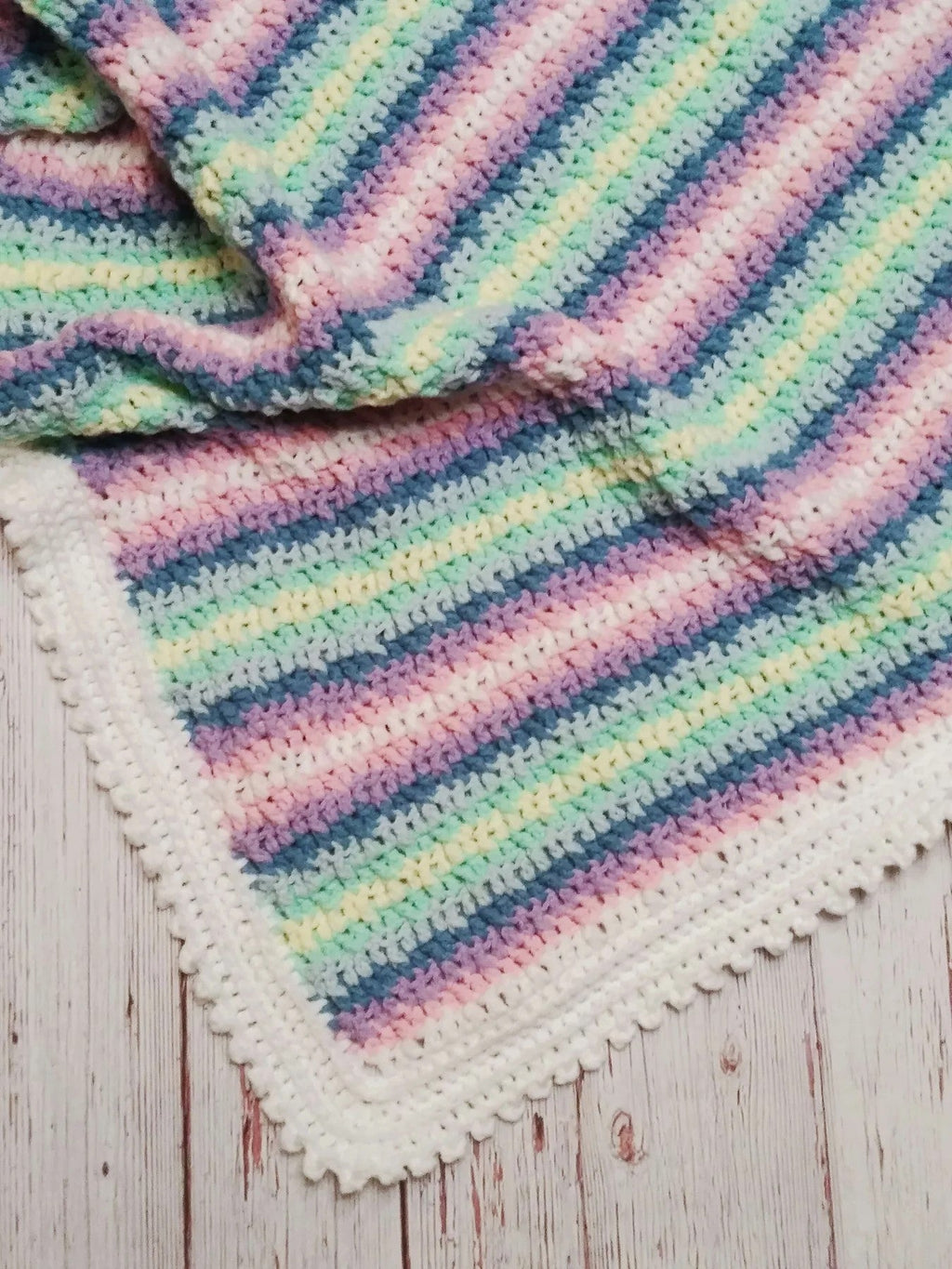 The Rainbow Stripe Blanket is a crochet blanket pattern made with medium weight yarn that has a skill level of easy.