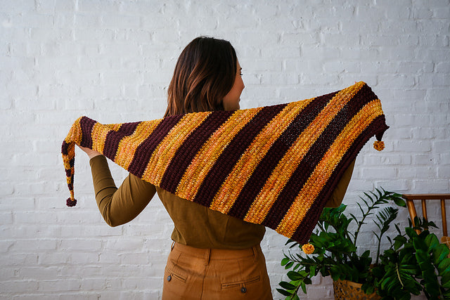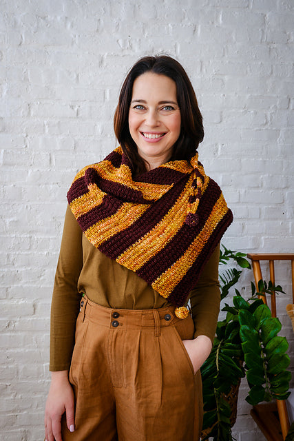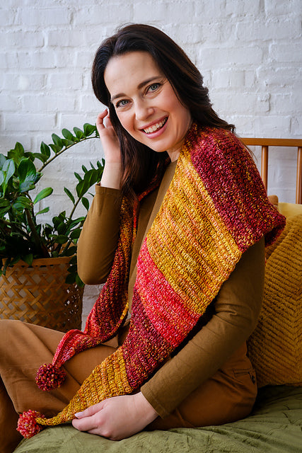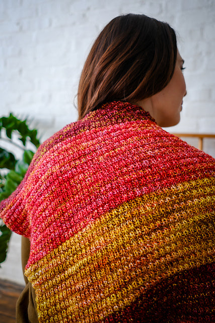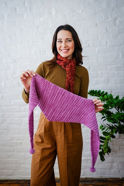 This simple neckwear is knit corner-to-corner with self-finished edges and easy texture. Choose 1-, 2-, or 3-skein version in a single color or a combination in Marla and Sami!