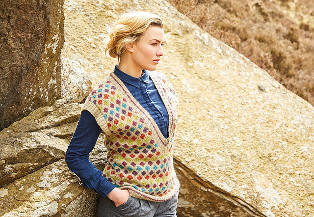 This collection of hand knitting patterns by Lisa Richardson showcases one of Rowan’s most popular yarns: Felted Tweed. The soft, tweedy blend of Merino wool & alpaca has a slight felted appearance that looks stunning knit into cables, colorwork & textured stitch patterns. Lisa’s collection of 7 patterns has something for everyone with two cardigans, two pullovers, a vest & a scarf.