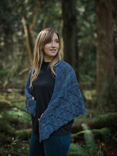 It doesn’t matter how cold it gets outside, because this luxurious shawl, worked in a worsted-weight yarn, promises cozy warmth all season long. With a hint of lace and a wrapped stitch pattern, there’s plenty of texture and joy for everyone.