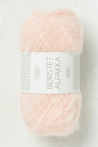 Borstet Alpakka (Brushed Alpaca) is a light, fluffy yarn spun with brushed alpaca fiber & nylon. This soft, cozy yarn has a fantastic halo & knits into luxe garments & accessories. The yarn consists of a nylon strand plied together with the alpaca to ensure that knits will maintain shaping. Simple stitch patterns such as stockinette & ribbing look best in this yarn. The yarn comes in a palette of nature inspired neutrals, as well as soft colors.