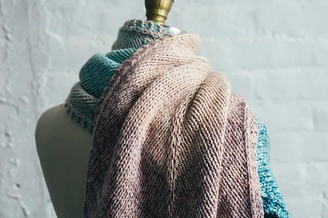 14 sts and 21 rows = 4” over Stockinette Stitch with two strands of yarn held together