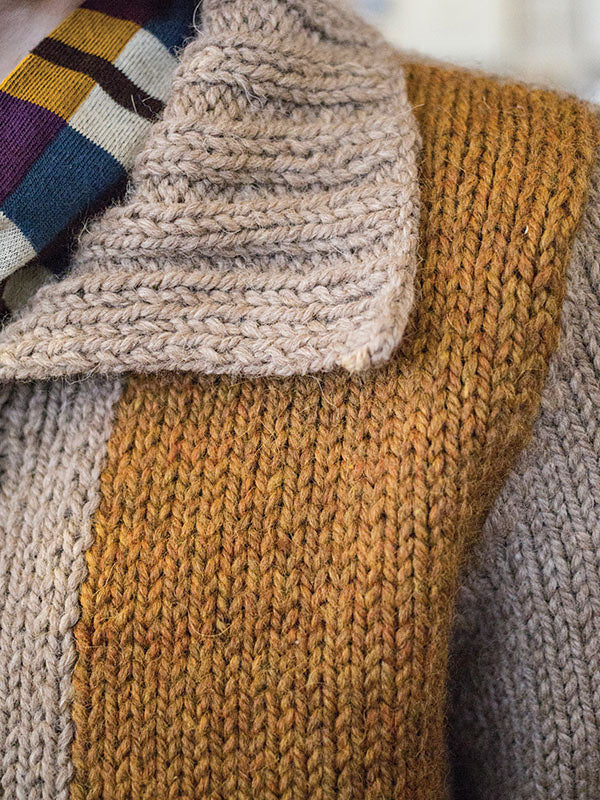 The easiest of intarsia panels elevate a neat little cardigan, sure to be a wardrobe staple.