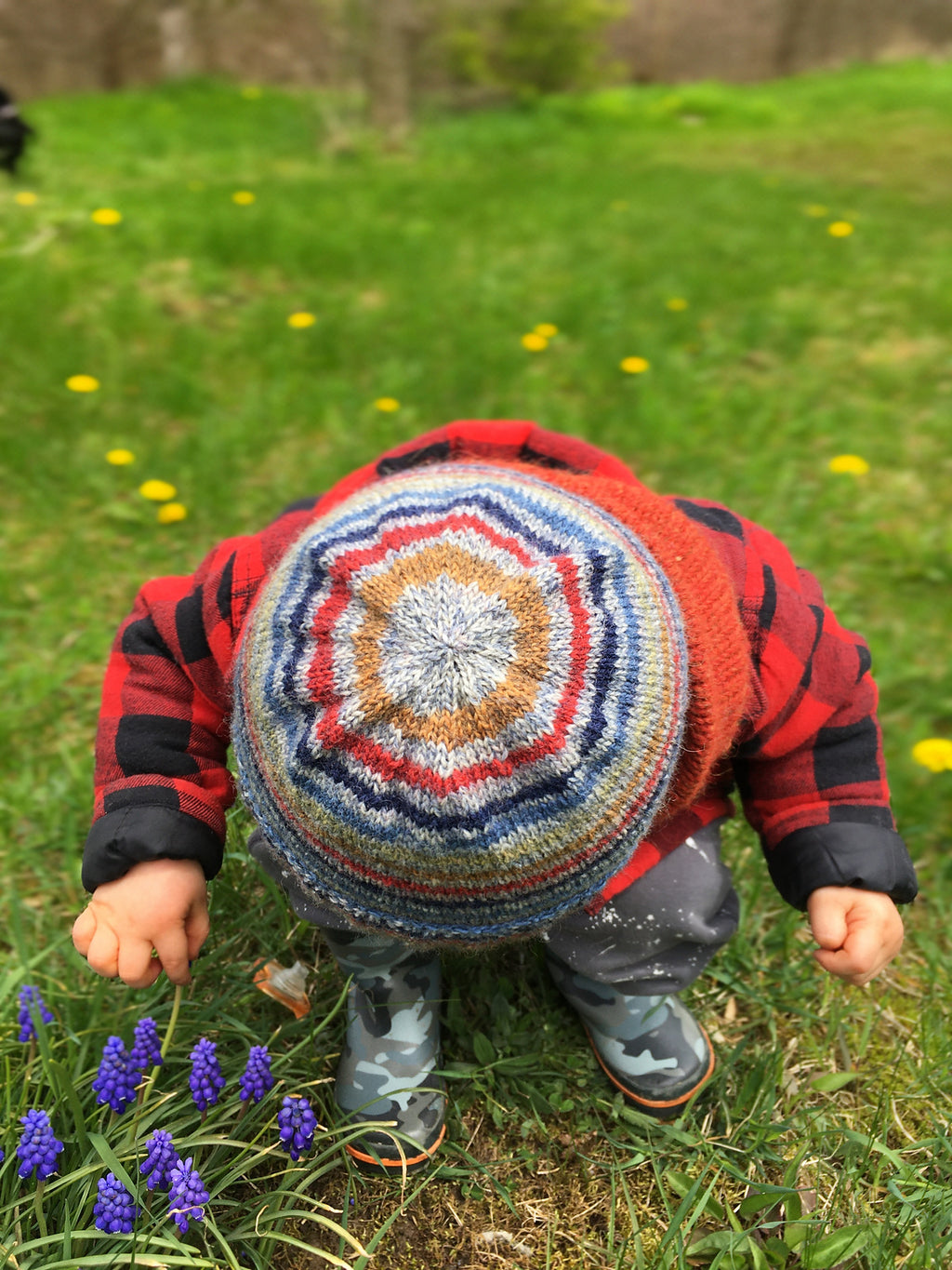 The hat is simply constructed from the bottom to the crown. It is made up of a wide ribbed brim that folds up for extra warmth while the rest flops and folds over. The body of the hat is knit on short circular needles and the crown is closed up with double-pointed needles.
