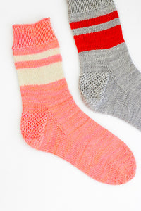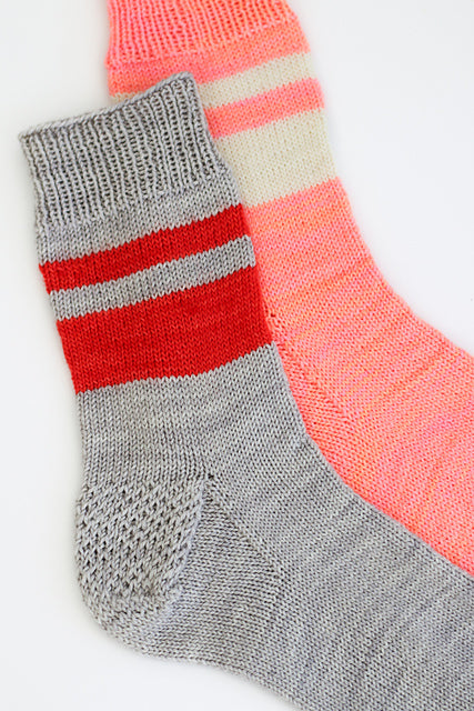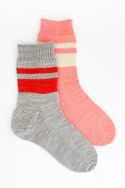 These top-down sporties just beg to be seen. And that textured heel flap?! A socks-with-sandals, show-offy must. Knit hard. Play hard, y’all.