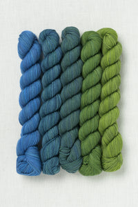 This fun set of 5 mini skeins will really get the creativity flowing. The colorway collections range from shade gradients to complementary palettes. We love these for cowls, hats, mitts, shawls & colorful stripes or colorwork yokes on sweaters.