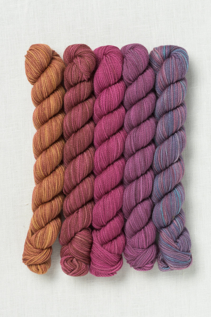 This fun set of 5 mini skeins will really get the creativity flowing. The colorway collections range from shade gradients to complementary palettes. We love these for cowls, hats, mitts, shawls & colorful stripes or colorwork yokes on sweaters.