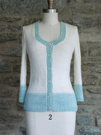 Bust Circumference: 32¼ (35, 39¼, 42, 45¾, 49½)”, buttoned.