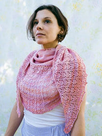 After increasing to the specified number of stitches, the shawl finishes with a simple lace border resembling tiny tulips. The piece shown has eleven repeats of the 8-row border pattern, but you can work more or fewer repeats for a larger or smaller shawl. You may need to buy extra yarn if making a significantly larger shawl.