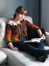 An adult sized version of the popular baby cardigan, this piece uses 5 different shades of the Classy worsted weight merino from Dream in Color.