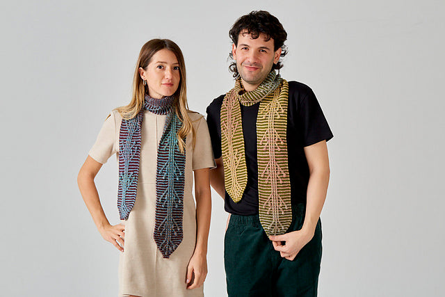 Ulukayn is a skinny scarf starting from the tip with a small number of stitches and expanding with increases. The work continues straight with a consistent stitch count. Stitches are decreased for the final tip to mirror the starting shape.