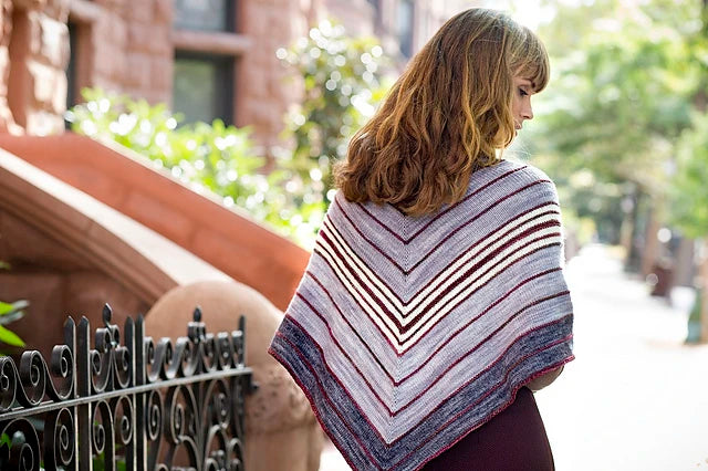 Begin by knitting three triangles and then join them together to create a fun chevron pattern that ends up being a large triangle! you can create own colors arrangements for the stripes.