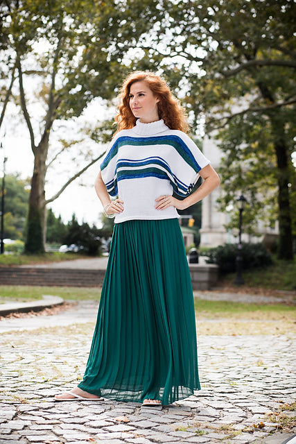 This sweater is worked in one piece from the lower front edge to the lower back edge. The turtle neck is picked up from around the neck opening and worked at the end.