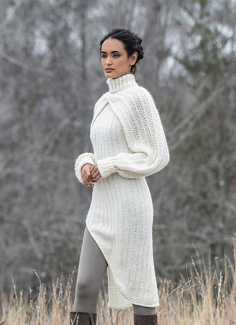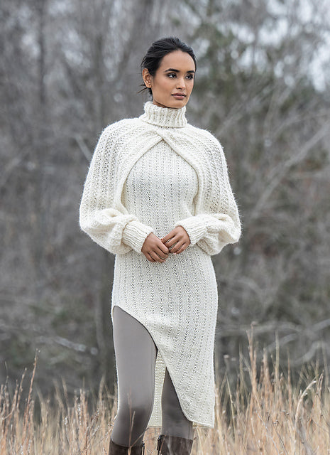 A fun tunic knit in Woolstok and a cozy shrug knit in Techno make the perfect combo for your winter wardrobe.